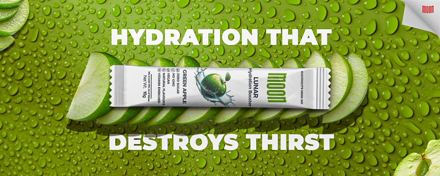 Replenish, Revitalize, and Perform with Lunar Hydration Booster. Real green apple, zero added sugar, essential electrolytes, a powerful B-vitamin complex with 100% RDA all packed with just 50 Calories per 700 ml to give you pure energy and deep hydration than just water.