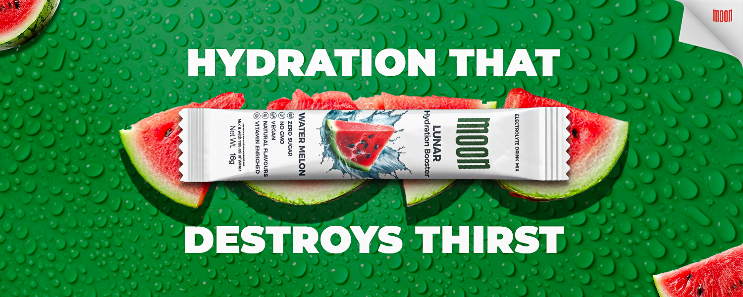 Replenish, Revitalize, and Perform with Lunar Hydration Booster. Real watermelon, zero added sugar, essential electrolytes, a powerful B-vitamin complex with 100% RDA all packed with just 50 Calories per 700 ml to give you pure energy and deep hydration than just water.
